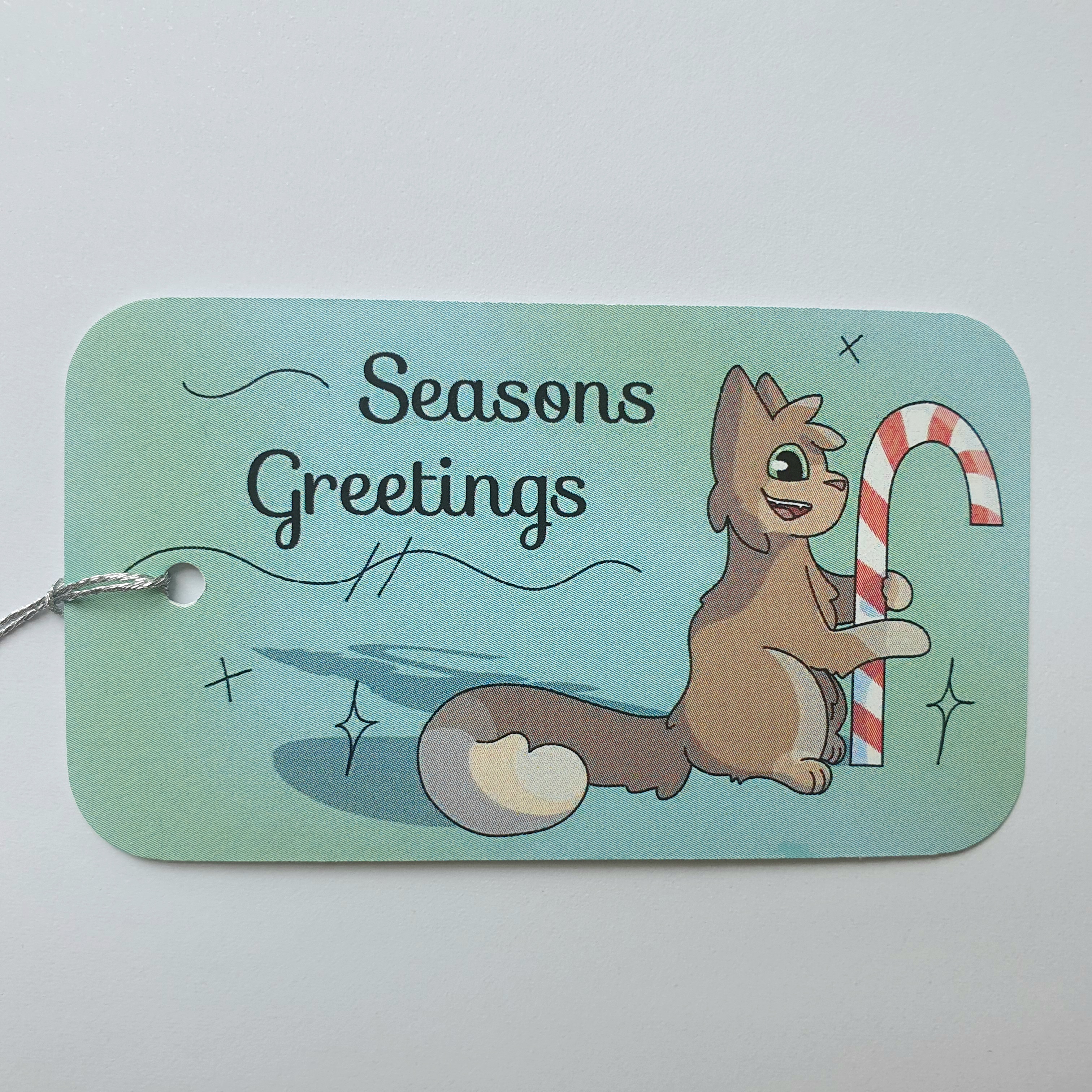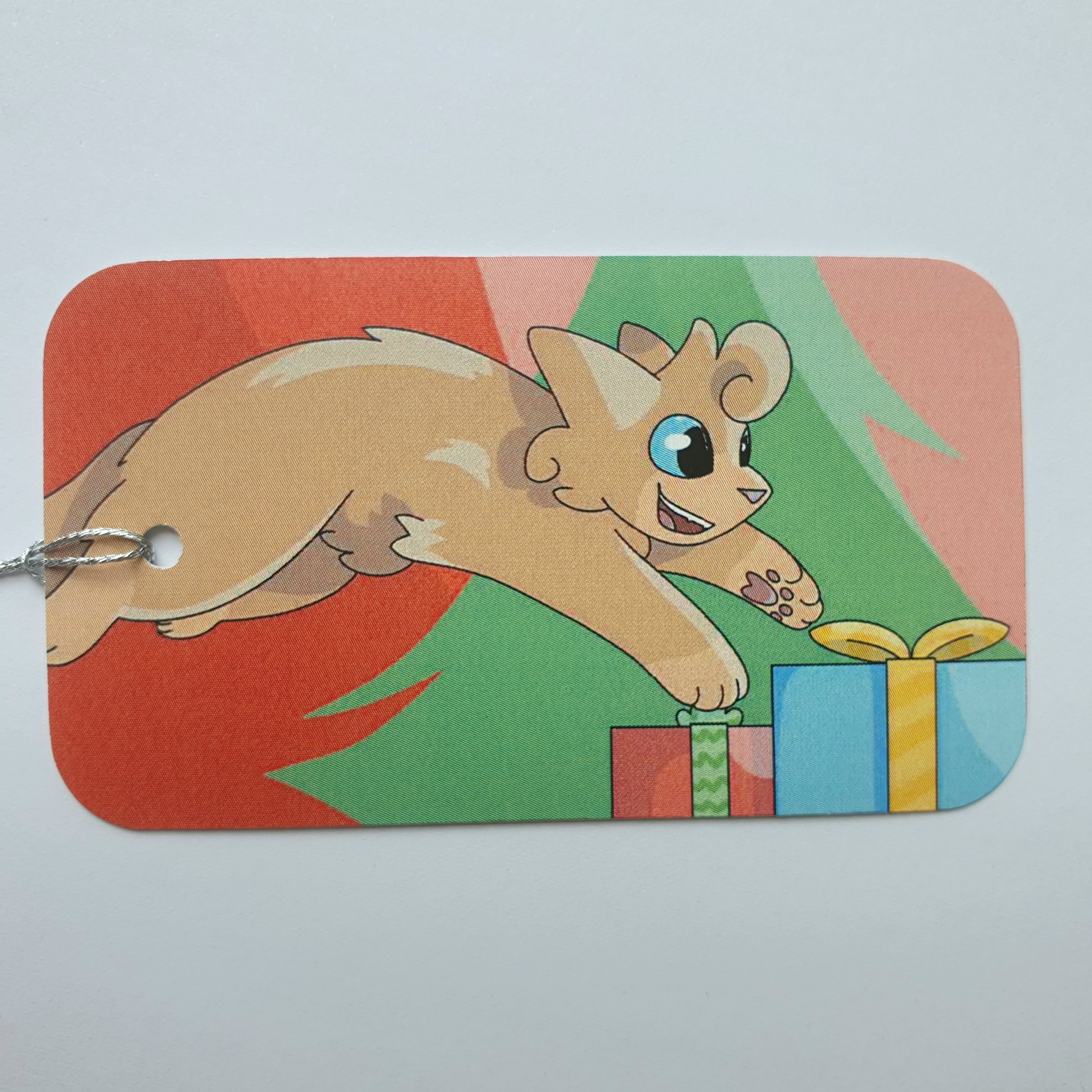 Christmas tags to spruce up your presents and bags! All five designs come in one pack, with silver string already threaded through. The backside of the tags is blank for writing on.